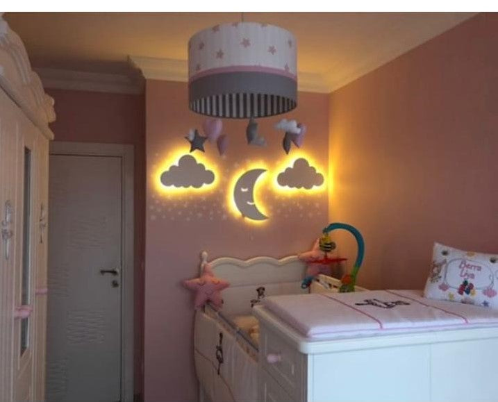 Set Of 3 Wall Light(1 Moon & 2 Cloud), Baby Room Night Light