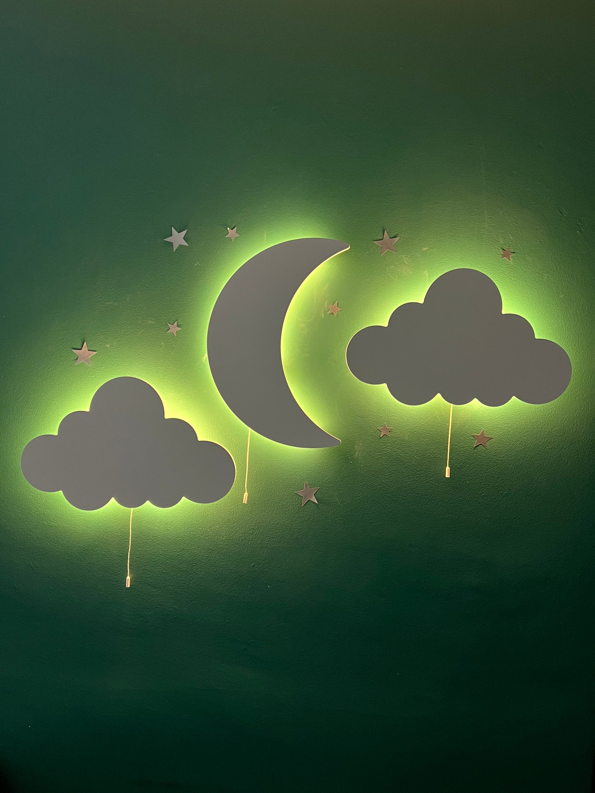 Set Of 3 Wall Light(1 Crescent & 2 Cloud), Nursery Room Lighting